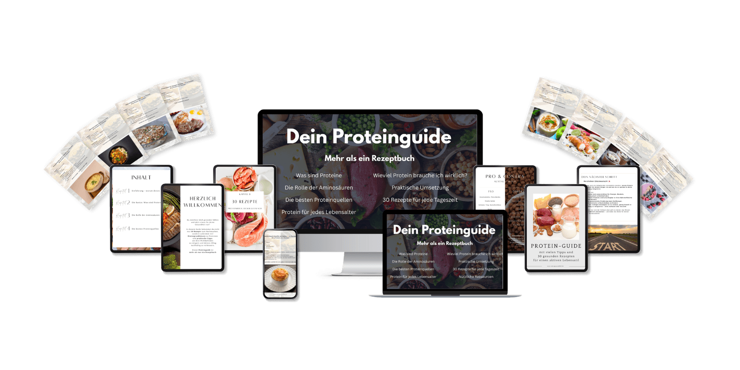 • „Dein proteinreicher Alltag leicht gemacht“ - 5-teilige Bonus-E-Mail-Serie, die dir zeigt, wie du clever einkaufst, Stress sparst und deinen neuen Lifestyle im Alltag umsetzt (WERT 19€)